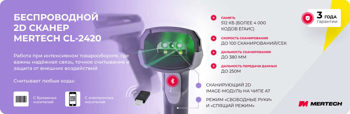 MERTECH CL-2420 BLE SPP — беспроводной 2D-сканер для складов, розницы и пунктов выдачи заказов. Модель ориентирована на работу в условиях высокой мобильности и интенсивного товарооборота, где важны стабильная связь, точное считывание и защита от внешних воздействий.