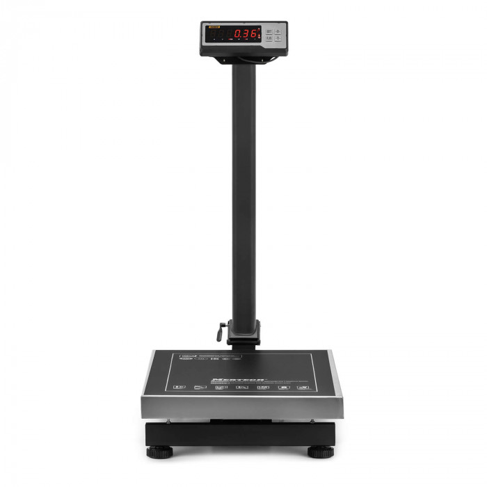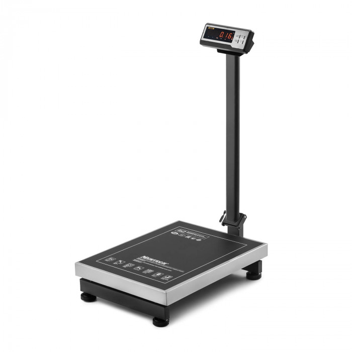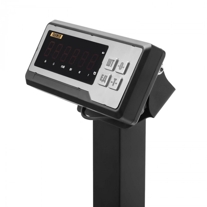 Складная стойка облегчает размещение весов и экономит место при хранении. На ней расположен LED-дисплей с крупными символами 11×20 мм — показания читаются под любым углом и в условиях низкой освещённости. Кнопочная клавиатура обеспечивает удобный доступ к основным функциям: обнулению, выбору единиц измерения, работе с тарой и счётному режиму. При перегрузке устройство подаёт звуковой и визуальный сигнал, что защищает датчик от повреждений.